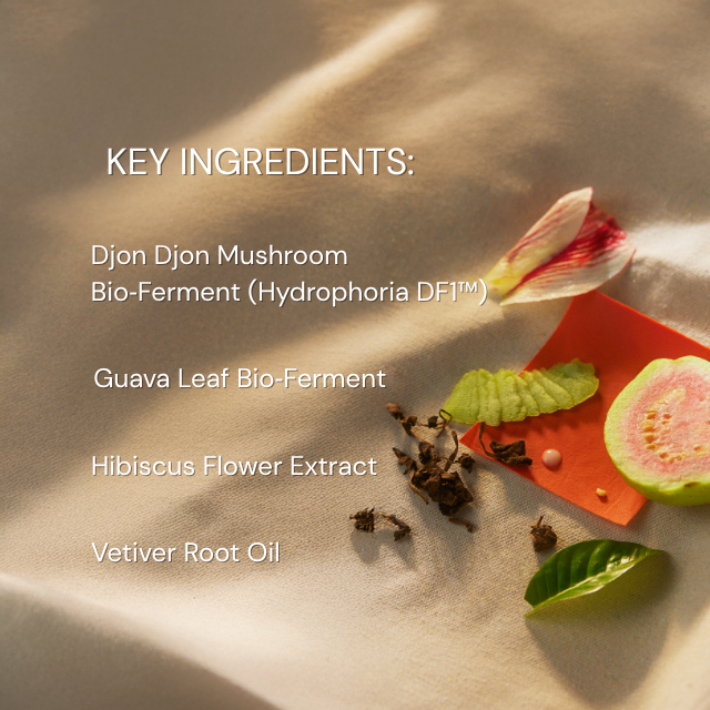 - Djon Djon Mushroom Bio‑Ferment (Hydrophoria DF1™) – High in beta-glucans for deep hydration, antioxidant defense, and barrier support
